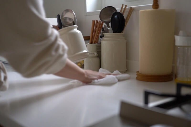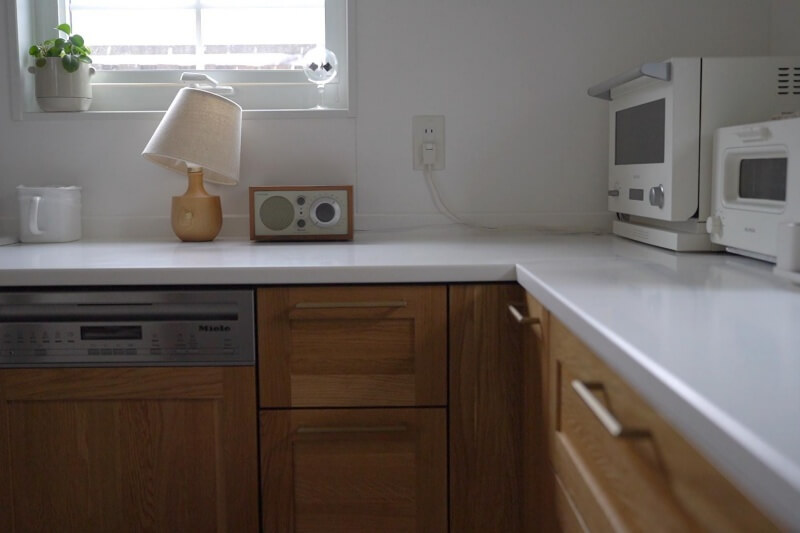 作業台を拭くためには物をどかさなければいけないし、ホコリや汚れも付きやすい。