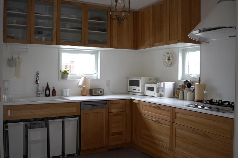 一般的なキッチンは吊戸棚、作業台、棚や引き出しという収納スペースで構成されていることが多いです。