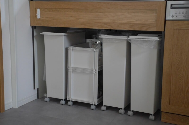 シンク下はゴミ箱を置けるようにしてもらったので、収納がありません。