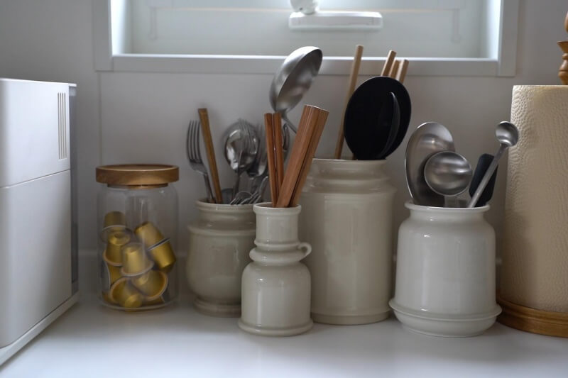 キッチンツールは、片手でサッと取れるようにスタンドに立てて収納。