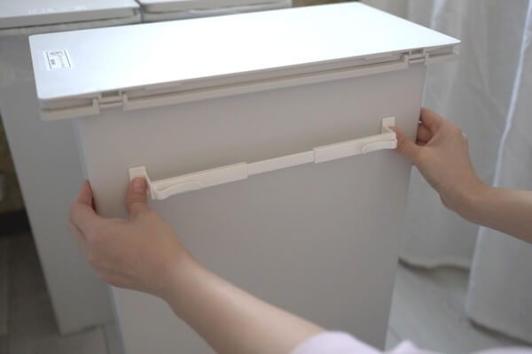 粘着テープが付いていて、ゴミ箱の側面にペタッと貼れます。
