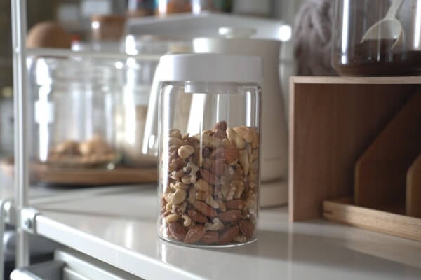 フタの部分は洗えないのでコーヒーやパスタ、ナッツなどの保存に使うのがいいと思います。