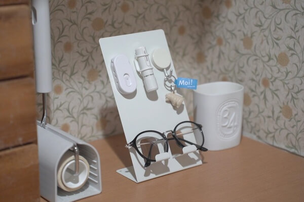 メガネを置いたり、スマホを置いたり、細々した小物の置き場所として便利です。