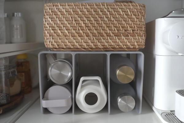 スリムなのでちょっとしたすき間に立てて収納できるのも便利です。