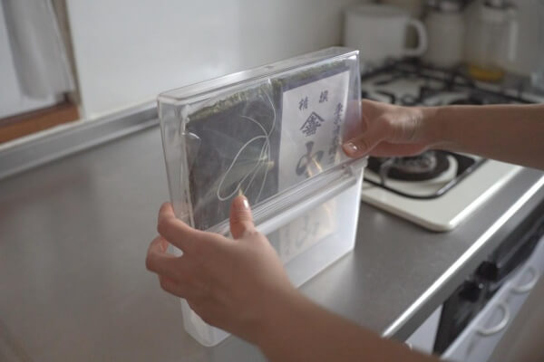 しっかり密閉できるので、海苔をパリパリのまま保存できます。