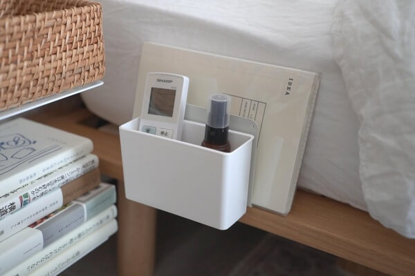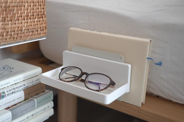 ベッドのマットレスの下に長いほうを差し込むと、読みかけの本を立てて収納できます。