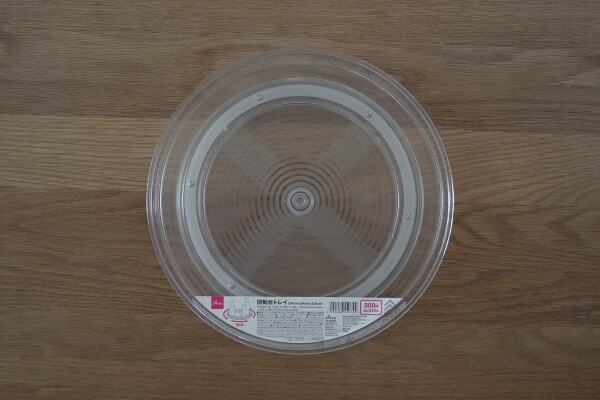 クリアな素材の回転式トレイです。