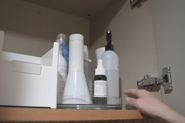 スプレーボトルなどの収納にちょうどいいサイズ。