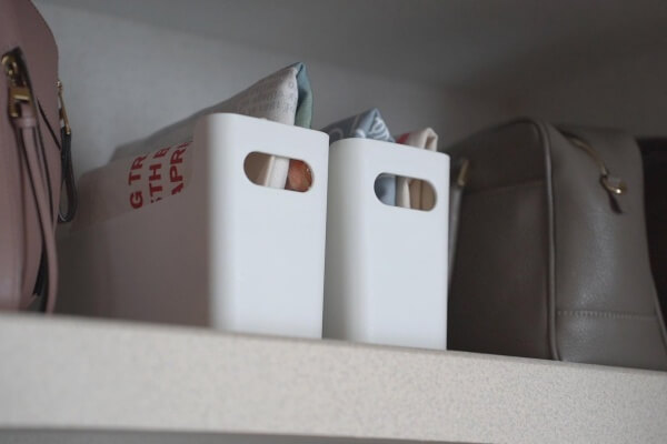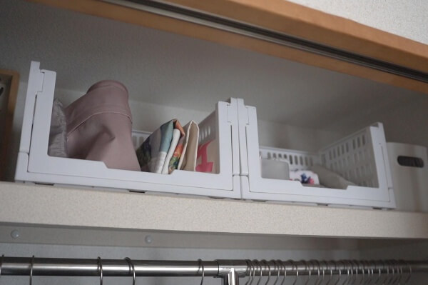クローゼットの上段に置いてエコバッグを入れたりもできます。