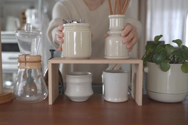 マグカップの上にラックを置くともう一段収納を増やせます。