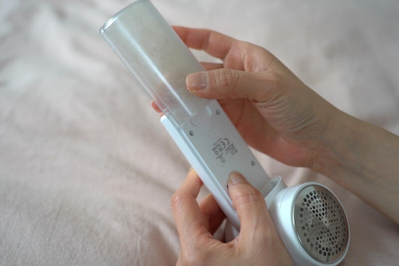 毛玉は持ち手の部分に溜まるので、取り外してゴミ箱に捨てるだけ。