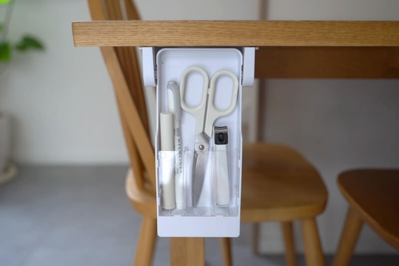 戸棚の下に張り付けたり、いろいろな場所に手軽に取り付けて収納を増やせます。