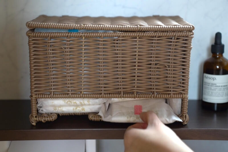 掃除グッズなどの収納にも使えますが、ナプキンの収納におすすめです。