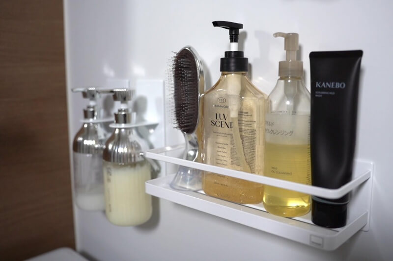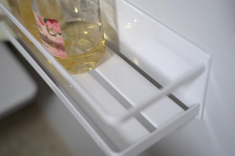 シャンプーやボディソープなどのボトル、洗顔フォームなどのチューブ類やヘアマスクなど、どんな形の物も収納しやすいラック。